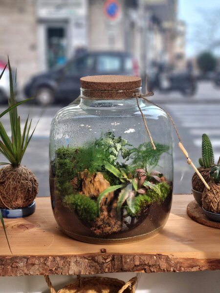 Per chi desidera andare oltre l’osservazione, offriamo workshop dedicati ai terrari, dove è possibile immergersi nel processo creativo e dare vita al proprio piccolo ecosistema. Nei nostri workshop classici, ogni partecipante costruisce il proprio terrario guidato passo passo, imparando le tecniche per creare un ecosistema equilibrato e facile da curare.